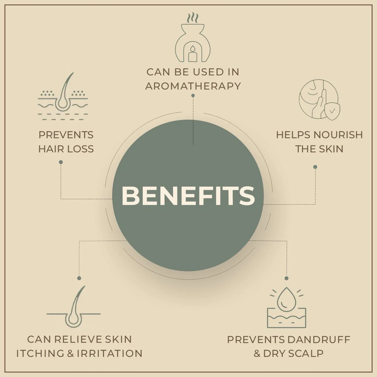 - Hair Care: Reduces dandruff, strengthens hair, and stimulates hair follicles to promote hair growth.